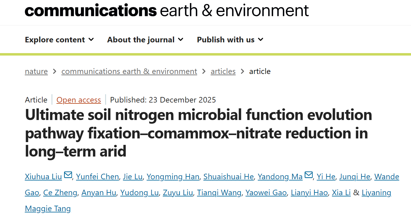 刘秀花教授团队在Nature子刊《地球与环境通讯》(Communications Earth & Environment)发表题为“Ultimate soil nitrogen microbial function evolution pathway fixation–comammox–nitrate reduction in long–term arid” 的最新研究成果。该成果首次证明:在长期干旱压力下,土壤微生物群落为适应氮素限制演化出一条独特的终极功能路径:固氮-完全氨氧化-硝酸盐还原循环。无码av